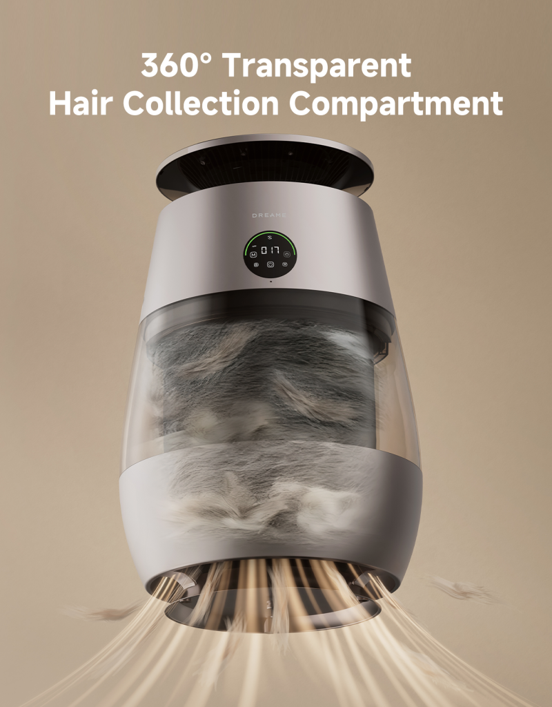 *99.9%: The experiment was conducted in a third-party laboratory. The prototype unit was placed in a 3m³ test chamber and set to pet mode. During testing, it was observed that after the unit was turned on, pet hair was captured onto the filter, with a capture rate of 99.9%. Data tested by third-party laboratory.Report No.FZCS-250905LW-01;